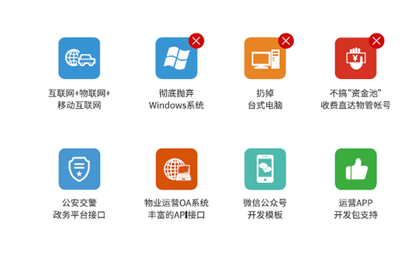 訪客管理、便民服務、收費管理、房屋經紀、廣告運營、電商運營